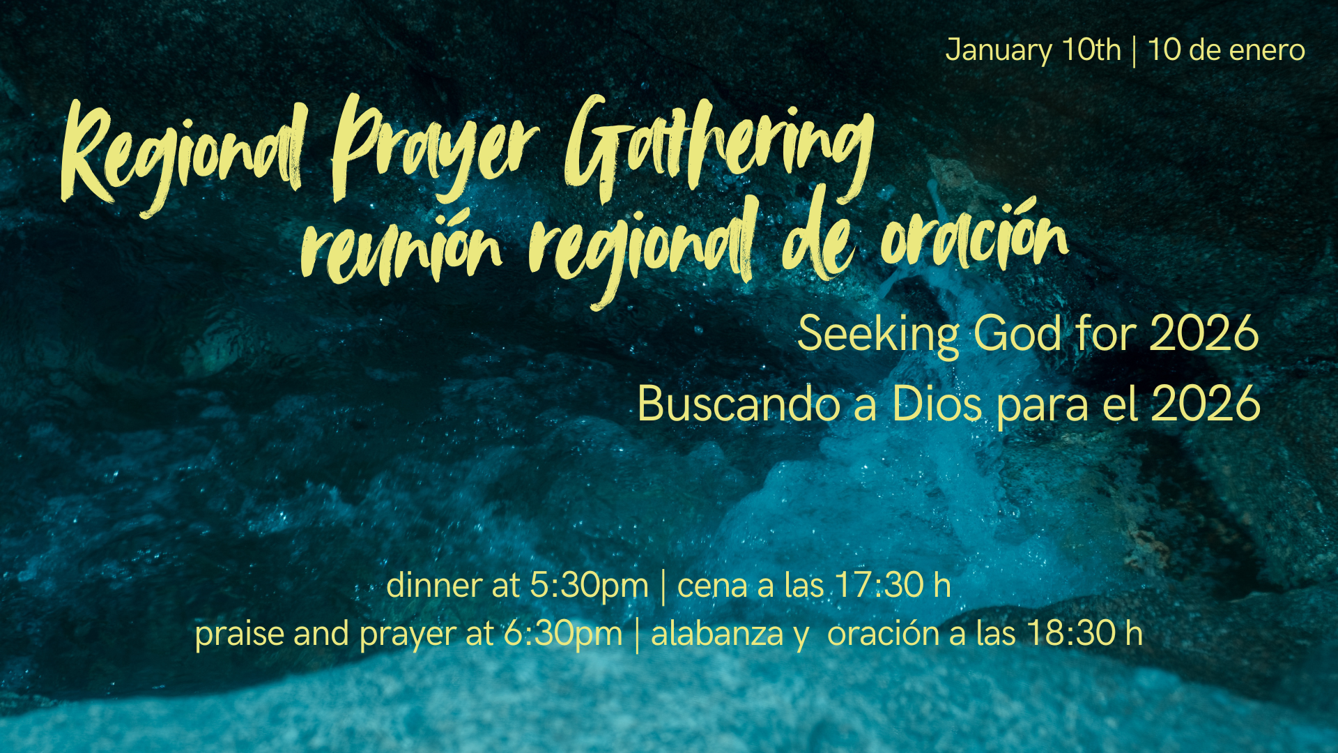 Join us for a Regional Prayer Gathering on Saturday, January 10th! We’ll be gathering at 5:30pm for a potluck dinner followed by praise and prayer at 6:30pm.